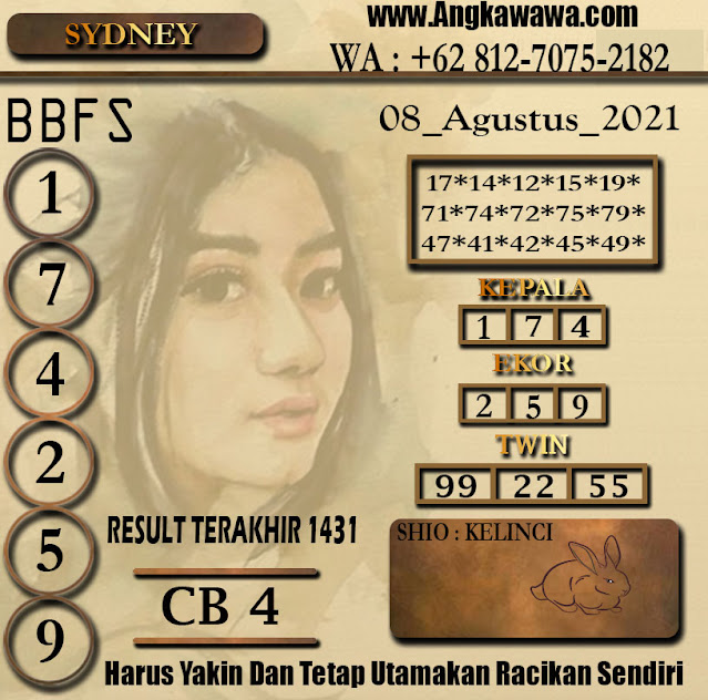 Prediksi WAWA SYDNEY Tanggal 08 AGUSTUS 2021